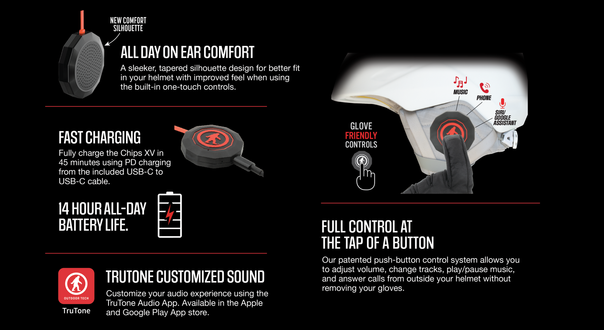 Take your audio on all your adventures with the all new CHIPS XV. The ultimate in helmet audio, redesigned with your feedback in mind. Listen to music and podcasts, take calls or group chats, and activate voice assistants—all without fumbling with your phone or taking off your gloves. Pop CHIPS XV into your helmet's audio liner and get ready to rock your ride!